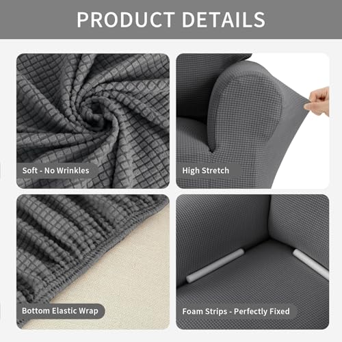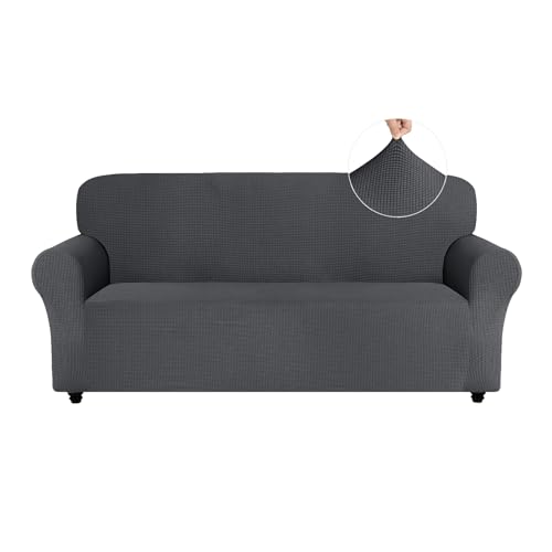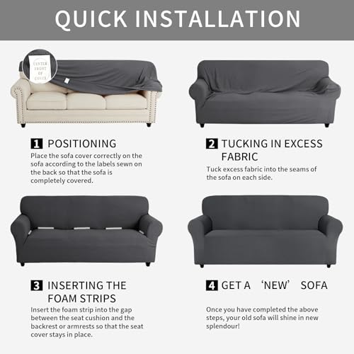 COMPREHENSIVE SOFA PROTECTION: The highly elastic fabric conforms snugly to your furniture, offering full protection against wear, stains, scratches, dust, and pet hair. Extend the life of your sofas and couches while reducing cleaning efforts. Featuring a strong elastic bottom band and premium non-slip foam strips, this couch cover stays in place—wrinkle-free, slip-free, and shift-free—providing a polished, custom-made look.