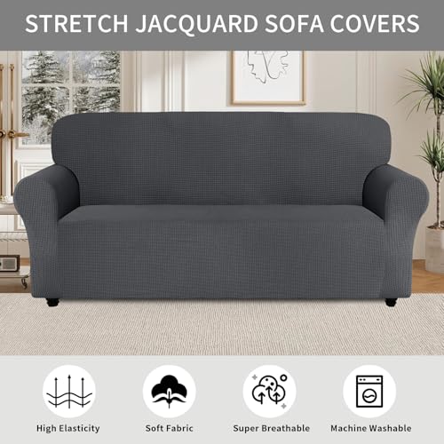 Easy-Going Sofa Covers 3 Seater, Non Slip Stretch Jacquard Sofa Slipcovers for Pet Dog, 1 Piece Couch Covers for Leather Sofa Living Room, Washable Settee Covers Furniture Protectors, Dark Grey