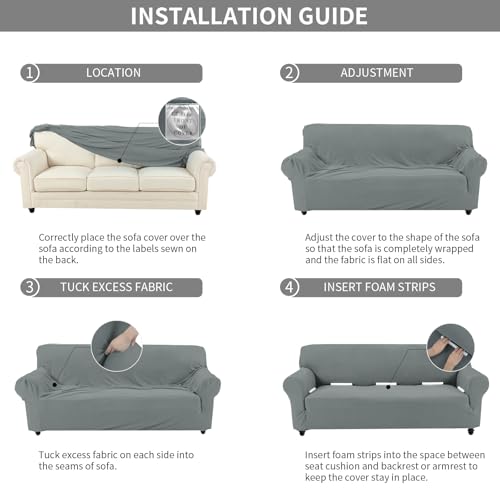 EASY INSTALLATION & MAINTENANCE: Package includes: 1 Sofa Cover and 6 Foam Strips. Installation is simple with guide labels sewn on the back of the cover and an easy-to-follow INSTALLATION GUIDE on the product page. Machine washable for hassle-free cleaning (WATER TEMPERATURE BELOW 30°C). Wash gently and hang to dry for longer lasting. Iron on low heat if needed. Durable and easy to care for, it’s designed to simplify your life.