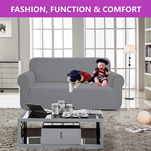 FULL PROTECTION: Our 1-piece stretch couch cover has been designed in such a way that it fully covers the whole sofa and the fabric of the cover is thick enough too, thus providing full protection to your sofa against stains, dust, dogs, cats, pets, scratches, fading, wear and tear, hence prolonging the life of the furniture. Our covers for sofas and armchairs are excellent choice for homes with kids and pets. Our sofa covers for leather sofa are equally suitable for fabric sofas.