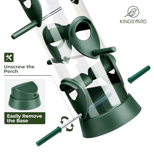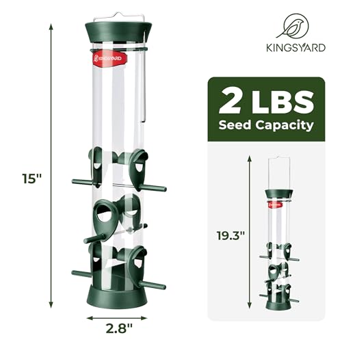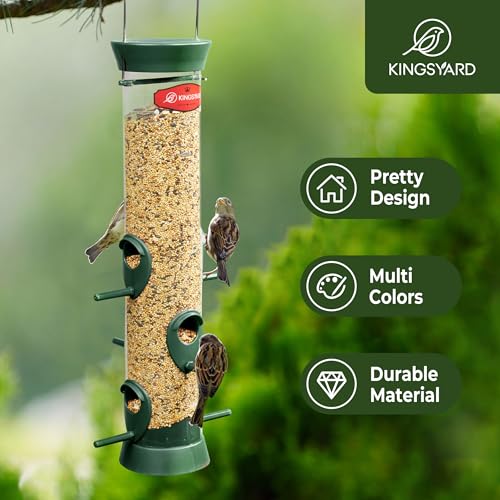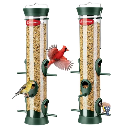 Kingsyard 2 Pack Tube Bird Feeder for Outdoors Hanging, Removable Base and Perch, 6 Feeding Ports – Easy to Clean, Premium Hard Plastic, Attracting for Finches Cardinals (Green)