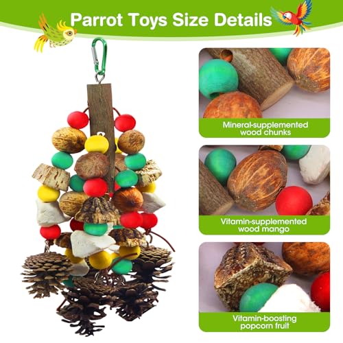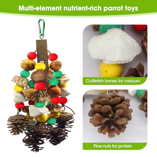 MQUPIN Parrot Toys,Nuts Nutrient-rich Bird Toys,Natural Wooden Parrot Cage Bite Toy,Cockatoo Toys Containing Cuttlefish Bones,Pine Cones,Wooden Mangoes and Carambola for African Greys,Cockatoo,Budgie