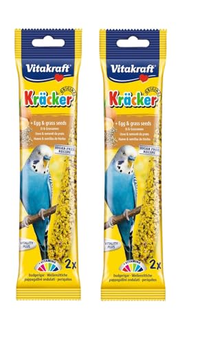 x2 VITAKRAFT Budgie Treat Egg & Grass Seeds Sticks 2pk Kracker Boredom Breaker