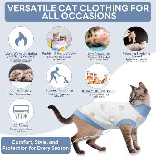 IDEAL FOR MULTIPLE SCENARIOS – Whether it’s spring/autumn warmth, wearing in air-conditioned rooms, travel to the vet, calming anxious cats, or simply training them to wear clothes for the first time – this cat shirt covers all your needs. It’s also perfect for kitten jumper wear or introducing your young cat to clothes.