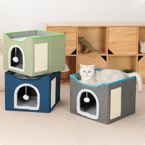 Easy to Assemble: With a collapsible design, this cat house is easy to store and maintain. The stylish gray color complements any decor, making it a perfect addition to your home.