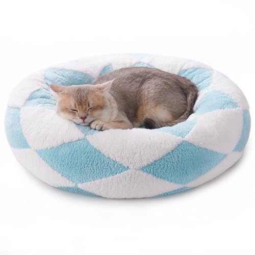 MEWOOFUN Cat Beds for Indoor Cats Large, Cat Donut Bed, Large Cat Bed Fluffy Calming Kitten Pet Bed, Washable Cute Pet Bed