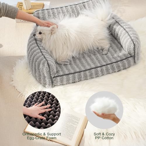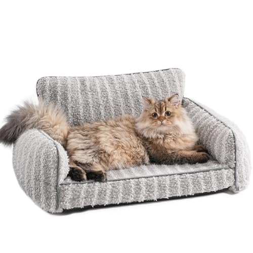 MEWOOFUN Stylish Cat Sofa Cat Beds for Indoor Cats – Orthopedic Small Dog Sofa Bed Dog Couch with Anti-slip Bottom for Small and Medium Dogs (Grey, M)