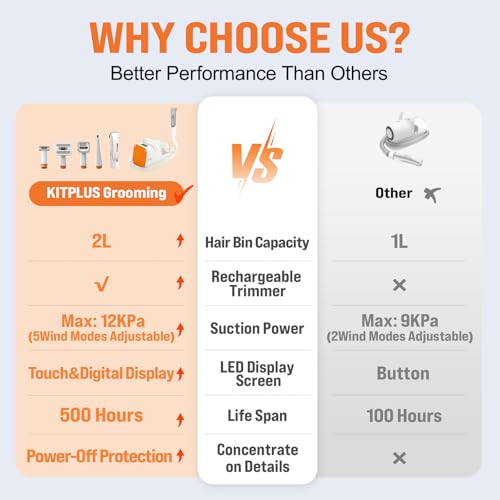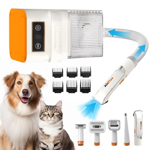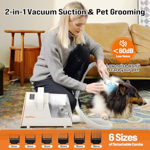 KITPLUS Dog Grooming Kit, 12000Pa 5 Modes Suction Power-Suction 99% Pet Hair, 2L Large Capacity Vacuum, Rechargeable Hair Trimmer, LED Display Dog Clippers, 11 Tools, Deshedding Brush for Dog&Cat