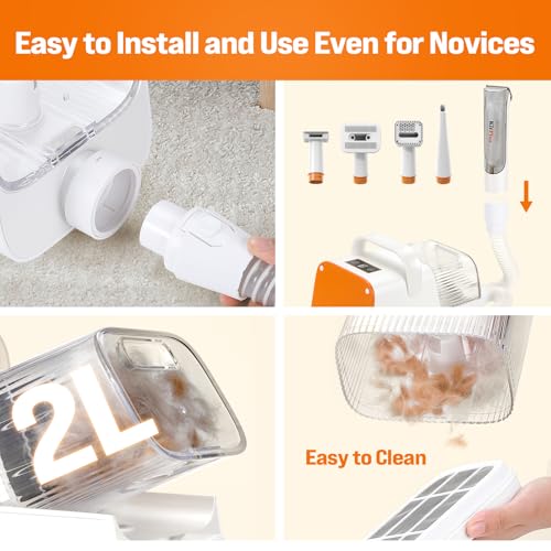 Adjustable Suction Power: The dog grooming kit has 5 suction modes (4Kpa to 12Kpa), which can easily capture every bit of pet hair, debris, dust, etc.