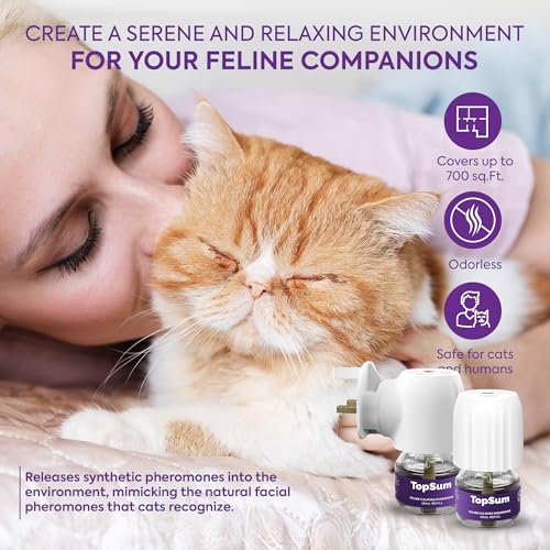 COMPLETE SET FOR ONGOING USE: The TopSum Cat Pheromone Diffuser Kit includes two diffuser heads and two 48ml refill vials. For best results, replace the refill monthly and the diffuser head every six months to maintain continuous support for your cat’s well-being.