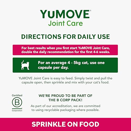 YuMOVE Cat Joint Supplement for Joint Care & Joint Aid, with Glucosamine, Chondroitin & Green Lipped Mussel for Cats of All Ages & Breeds, 60 Capsules
