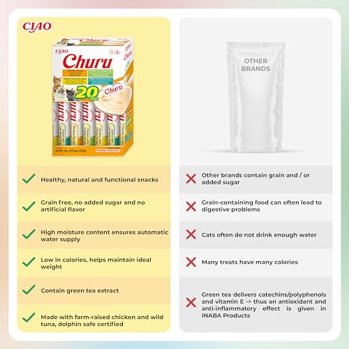 Churu by INABA Cat Treat – Chicken Variety Box – 1 Pack (20 x 14g total) / Soft & Creamy Cat Treat, Delicious & Healthy Snack, Purée Food Topper, Natural, Grain Free