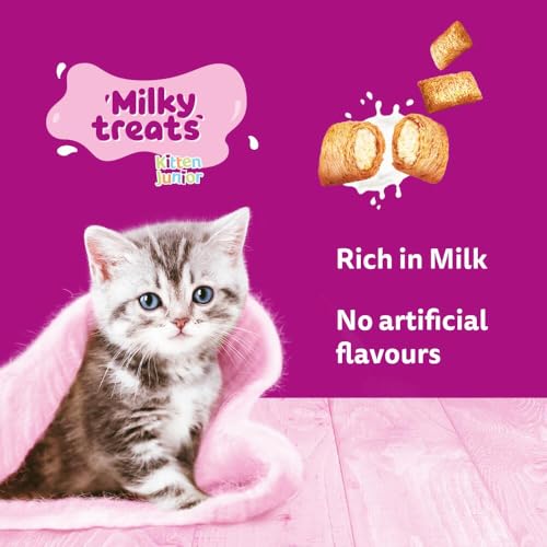 Delicious dual textured treats for kittens, rich in milk, and less than 2 Kcal in every treat