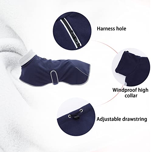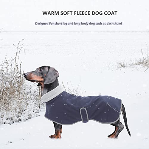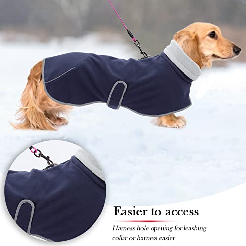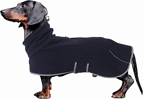 Babepet Dachshund Coat Soft Fleece Dog Jacket Pullover Jumper – Adjustable Outdoor Sausage Dog Apparel with Zipper & Leash Hole – Dark Blue – Miniature & Medium Breeds
