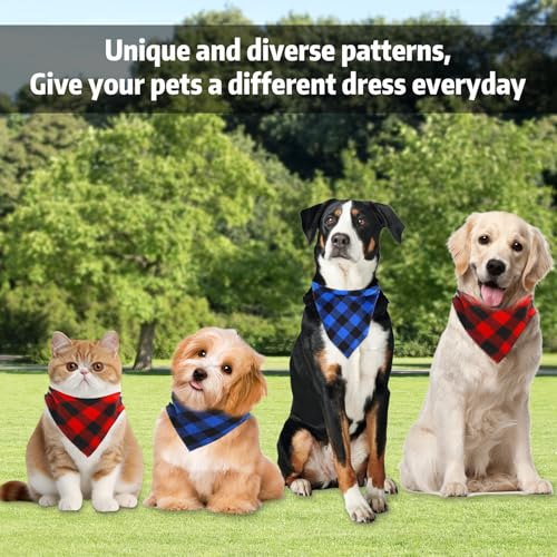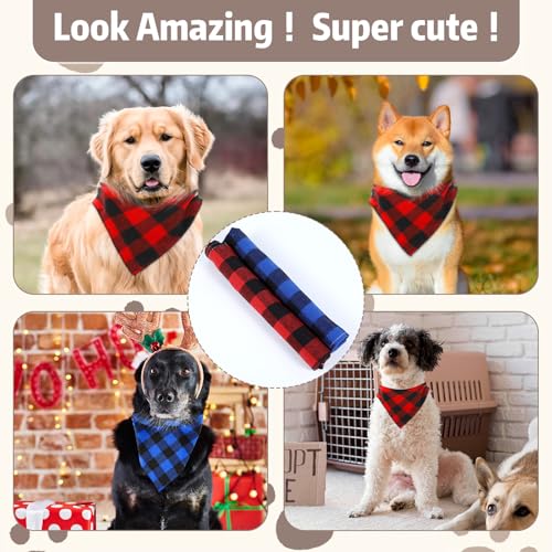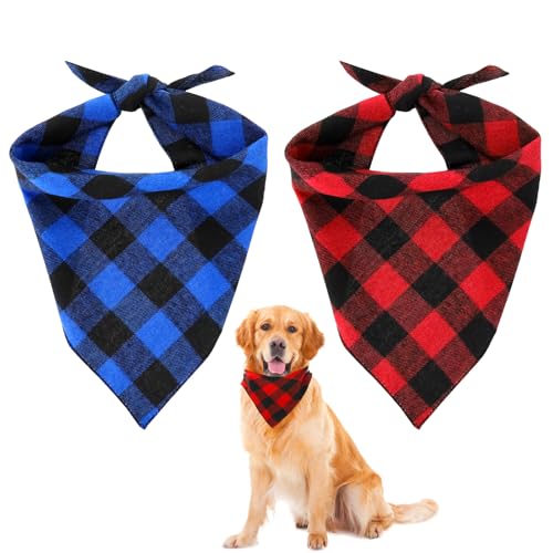 Dog Bandana, 2PCS Triangle Dog Bandanas Plaid Adjustable Bib Washable Dogs Bandanas Apparel Handkerchief Accessories for Large Medium Dogs Puppies Pets