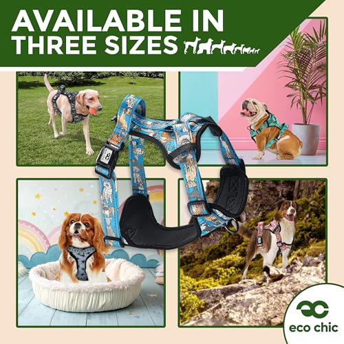 Eco Chic Recycled Comfort Pet Harness Adjustable No-Pull Reflective Padded Dog Vest Harness (4×4 Black Medium)