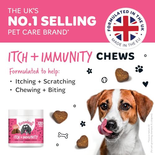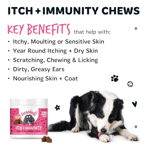 BUGALUGS Itch & Immunity Dog Treats – Helps Soothe Itchy Skin, Paws, Ears – Licking, Scratching – Perfect for Small, Medium & Large Dogs
