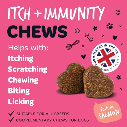 Brought to you by the UK’s No1 Best Selling pet grooming brand Bugalugs – Our Itch & Immunity Dog supplements chews are suitable for all breeds and great dog treats for small dogs, dog treats for medium dogs & dog treats for large dogs over 4 weeks old
