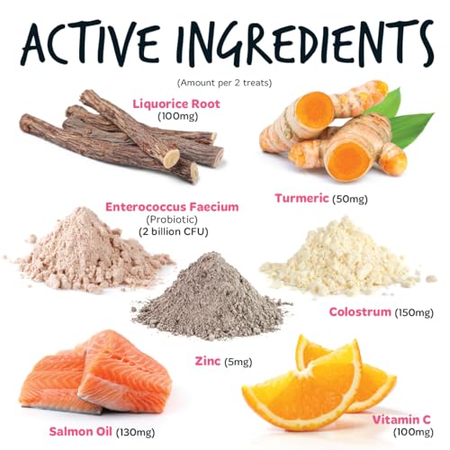 Best-in-Class Ingredients – Packed with amazing ingredients, including added Probiotic, Colostrum, Turmeric, Salmon oil, Liquorice root and many more. These chews help support your dog’s wellbeing