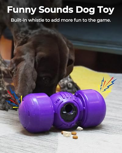 LACCEN Interactive Dog Toy, Rolling Dog Treat Dispenser Slow Feeder, Funny Puzzle Toy Reduce Boredom Improve IQ, Dog Treat Toys for Boredom Medium Large Dogs (Purple)