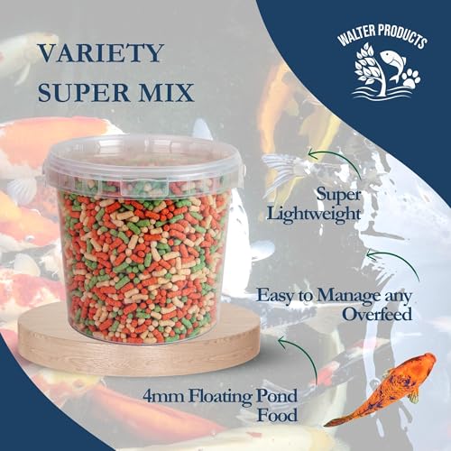 Walters Variety Super Mix (5L Tub) | Pond Fish Food for Goldfish, Koi and all Cold Water Pond Fish | Nutritional Floating Fish Food Pond Pellets and Sticks in Stay Fresh EasyTubs
